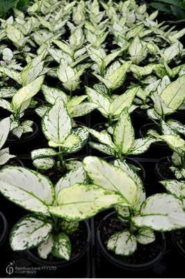 An aglaonema with almost pure white leaves. A fantastic indoor pot plant or understory plant in warm protected gardens.