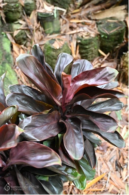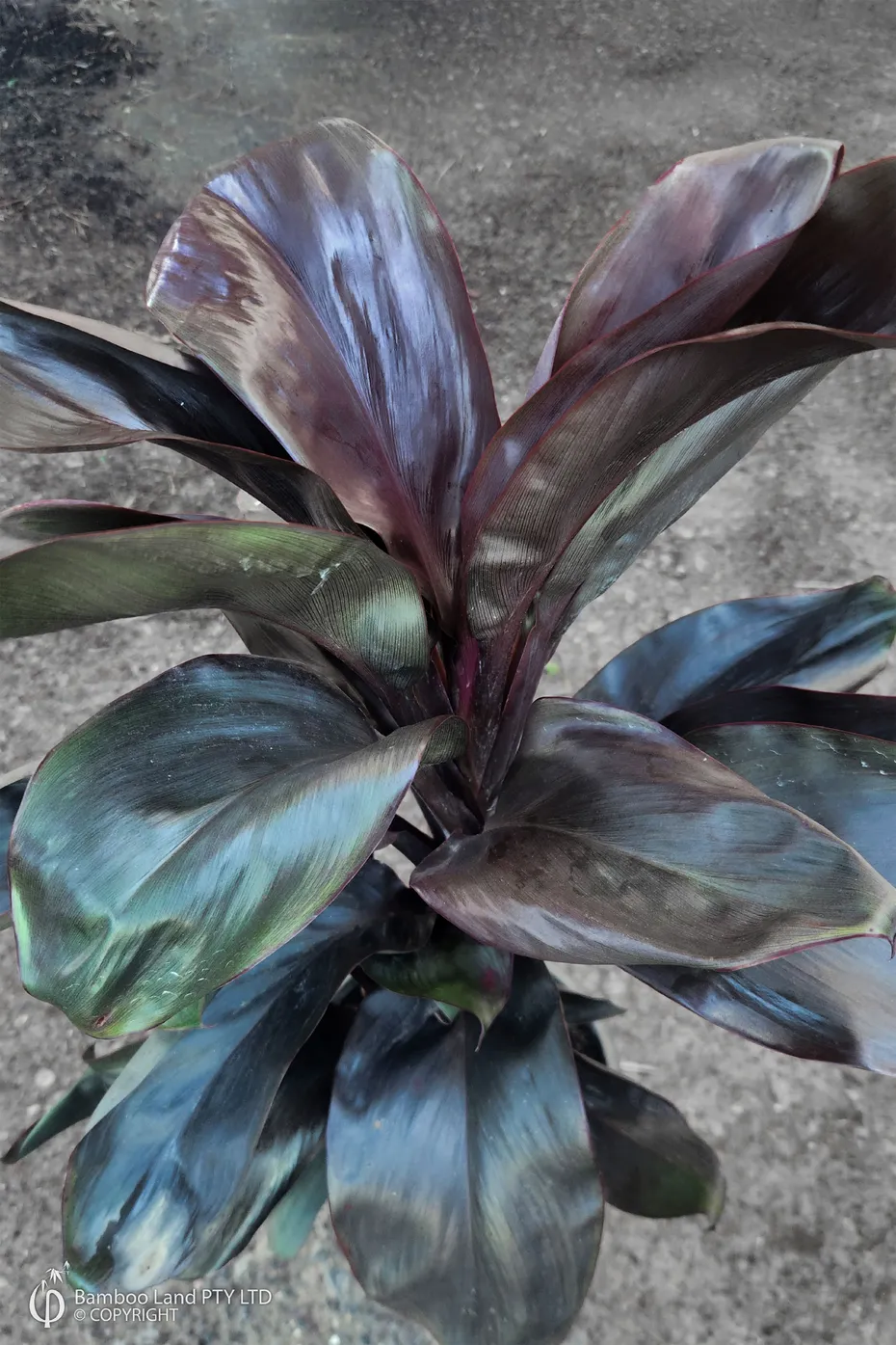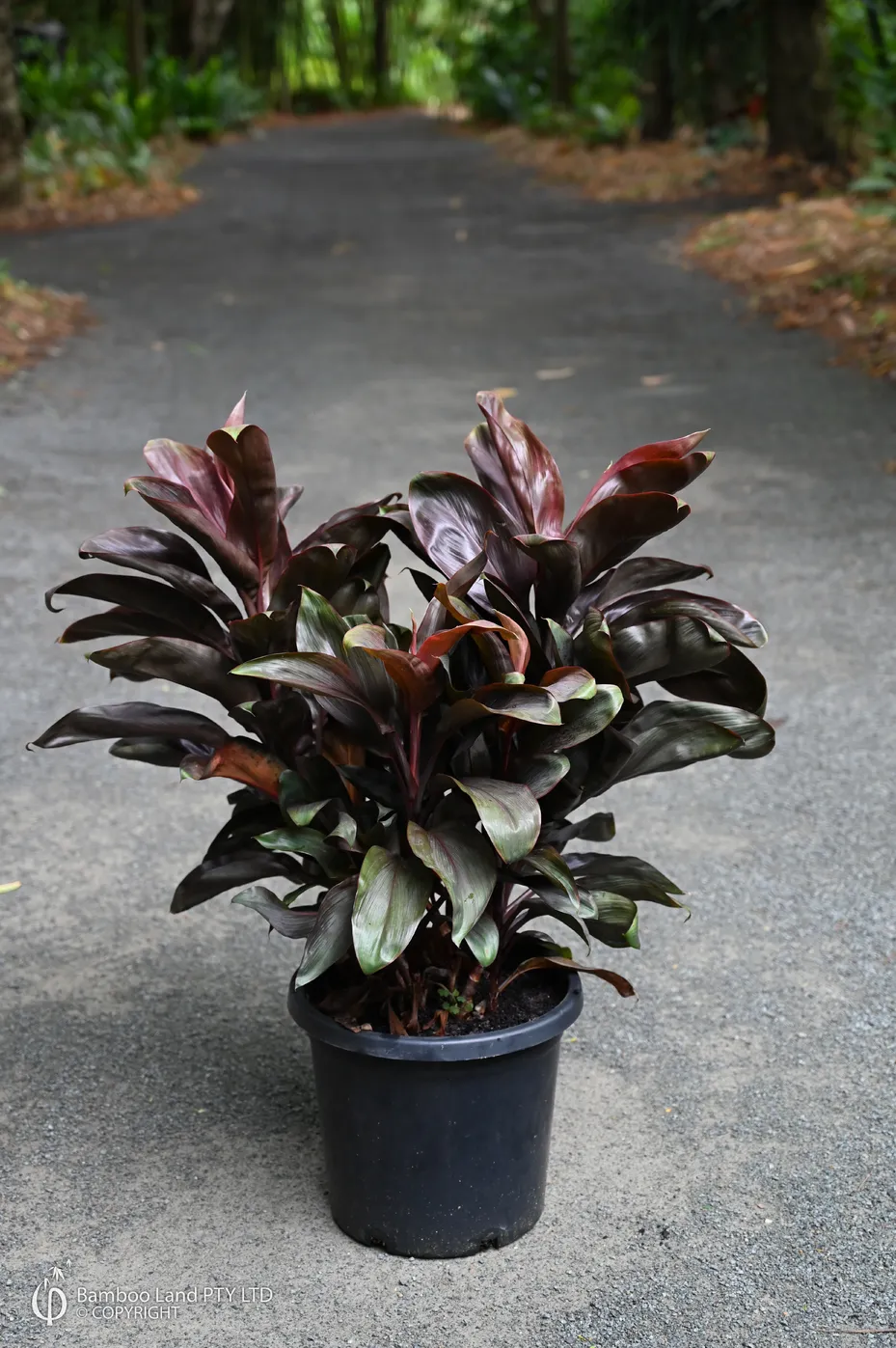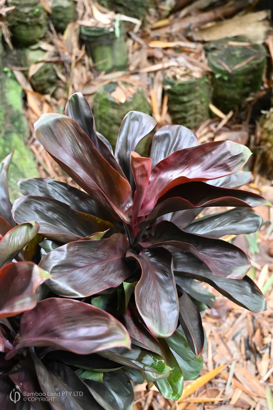 New plum coloured foliage emerges through summer, gradually deepening to near-black in winter, particularly when grown in bright filtered light. An outstanding contrast plant among tropical foliage.