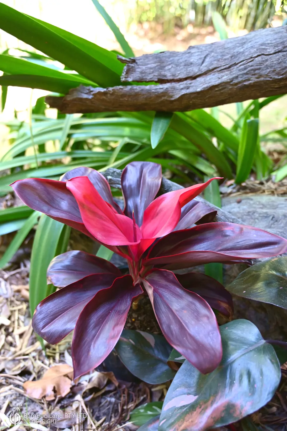 A cordyline with ruby red foliage, deepening to burgundy as it ages. A beautiful addition to any tropical garden.