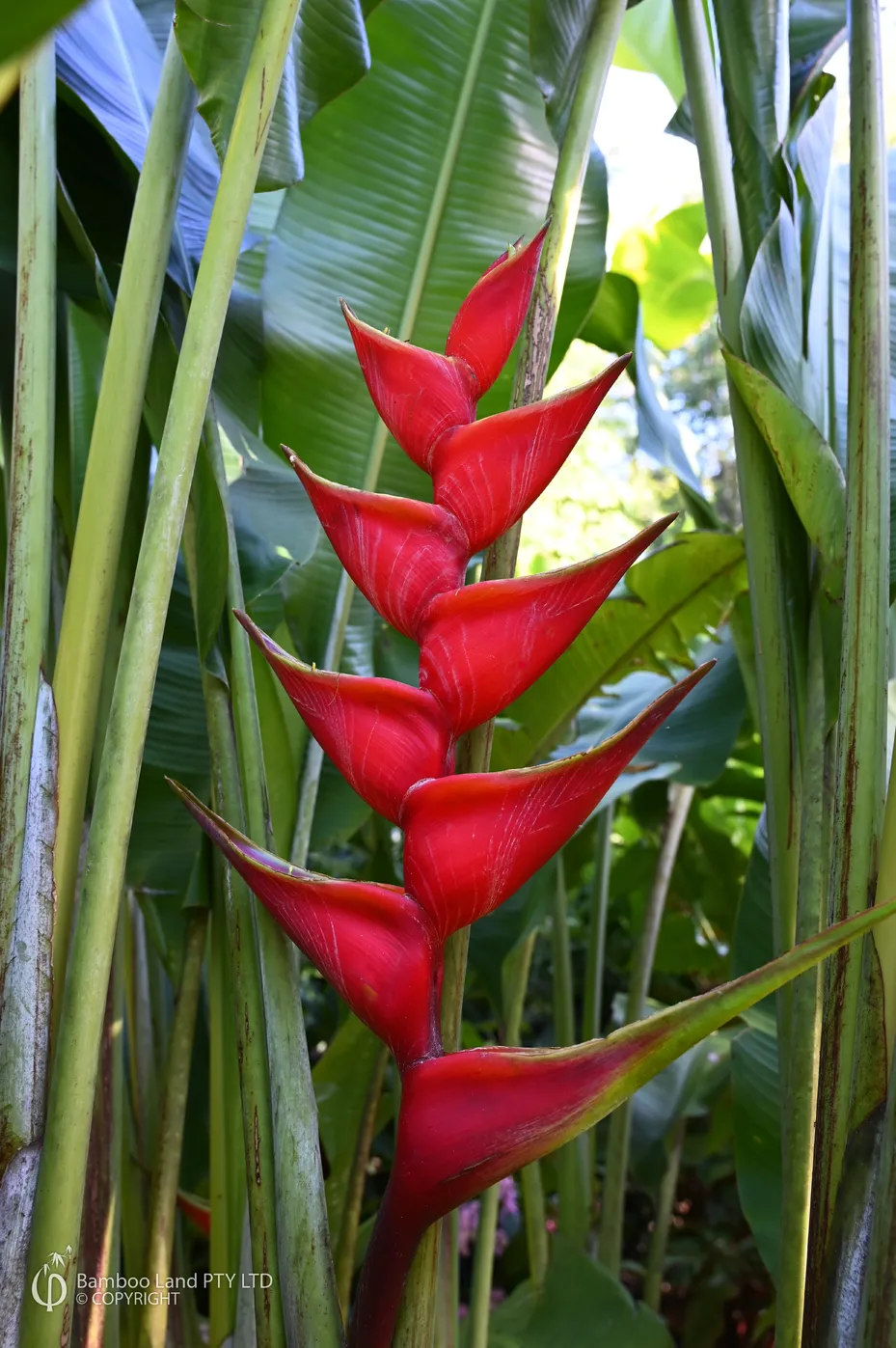An outstanding landscaping plant and also one of the largest heliconias. Bright red bracts with green tips. Nice upright and tidy growth habit.