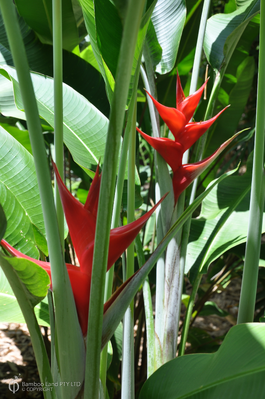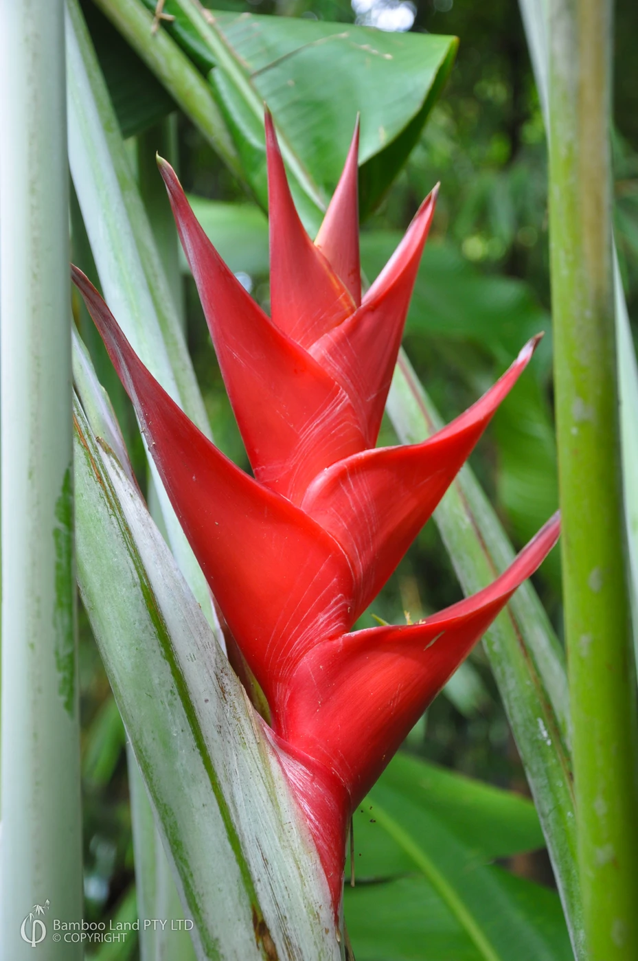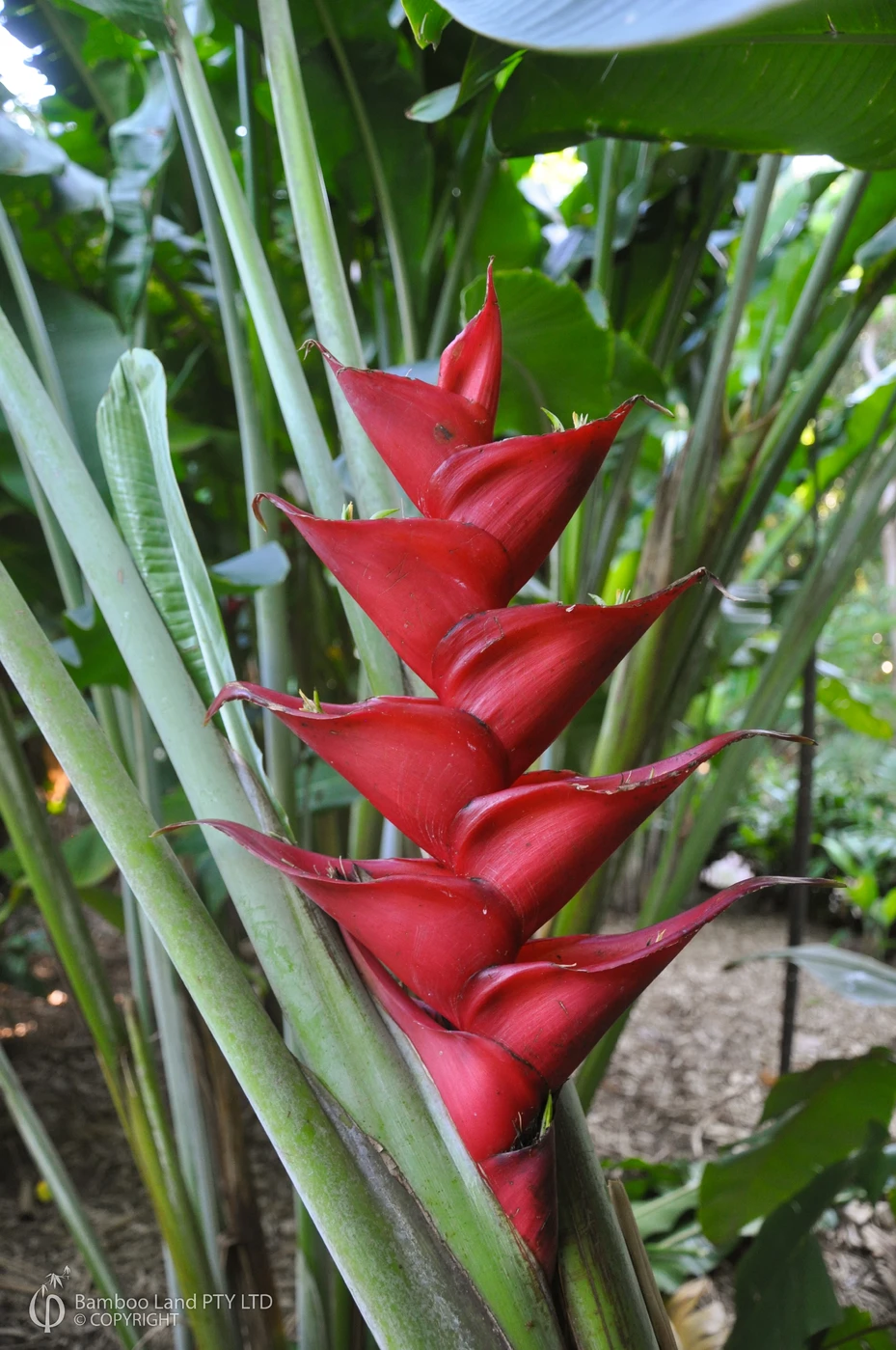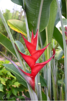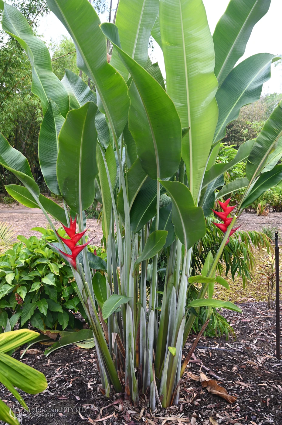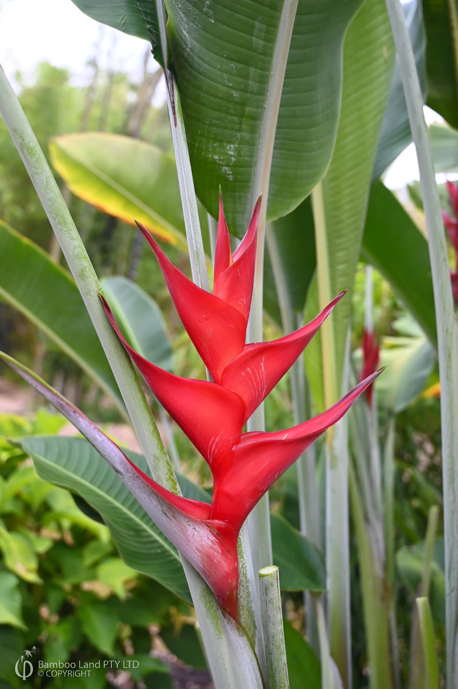 Heliconia caribaea ‘Purpurea’ features fantastic bright red bracts contrasting against waxy white stems. With a clean, upright growth habit it thrives in warm, sheltered positions and makes a striking landscape specimen or cut flower.