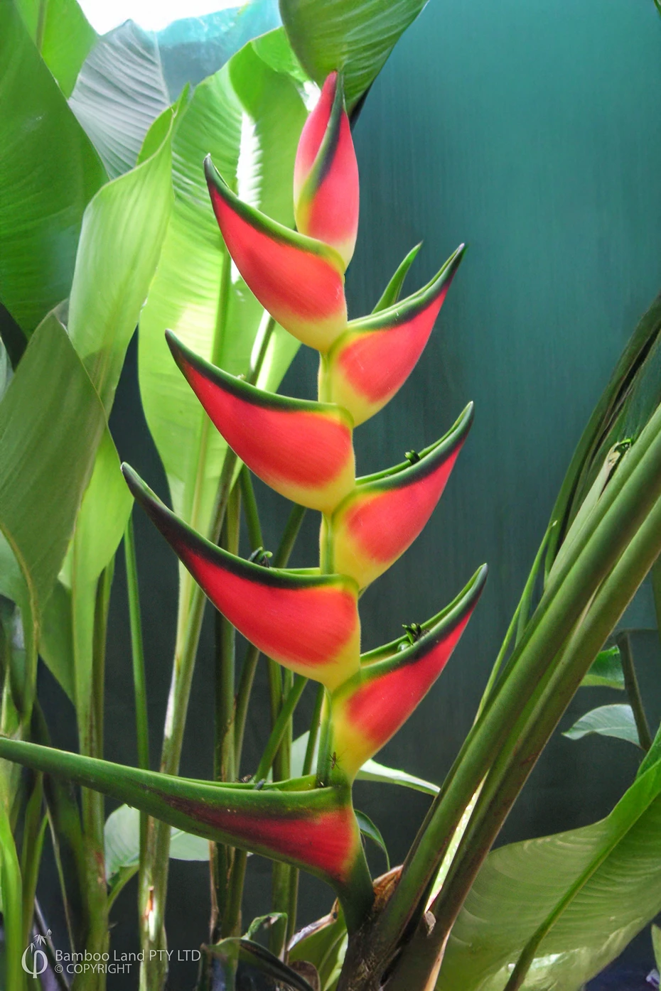 A stunning feature heliconia, ideal for landscaping or cut flowers. Upright stems carry bright red bracts with a creamy base and contrasting dark green lip. Like other Orthotrichas, it flowers in the cooler months when other heliconias are not in bloom.