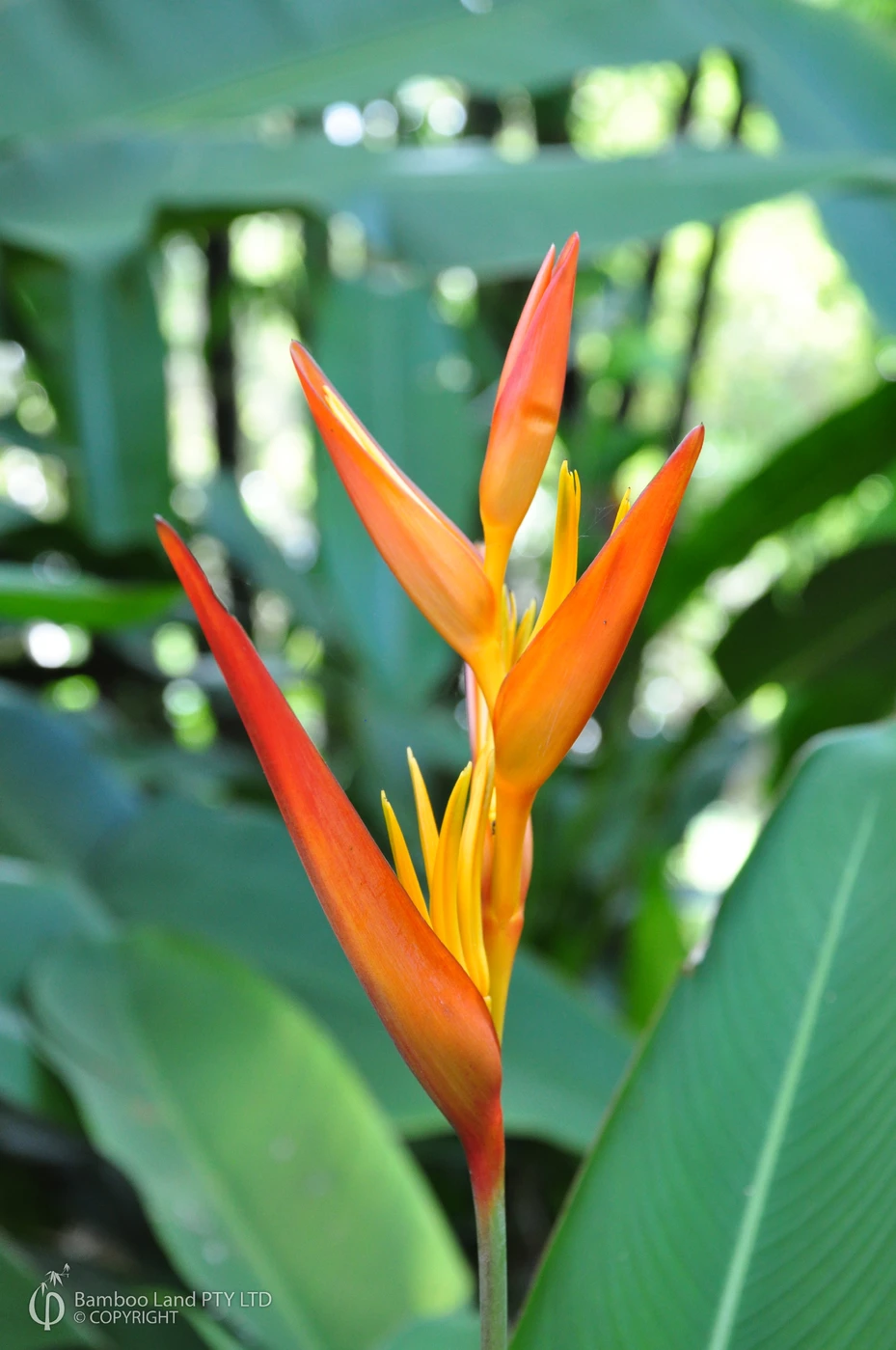 A prolific flowering heliconia with upright orange-red bracts and bright yellow flowers. A great filler plant that flowers repeatedly through the warmer months, bringing vivid tropical colour to gardens and landscapes.