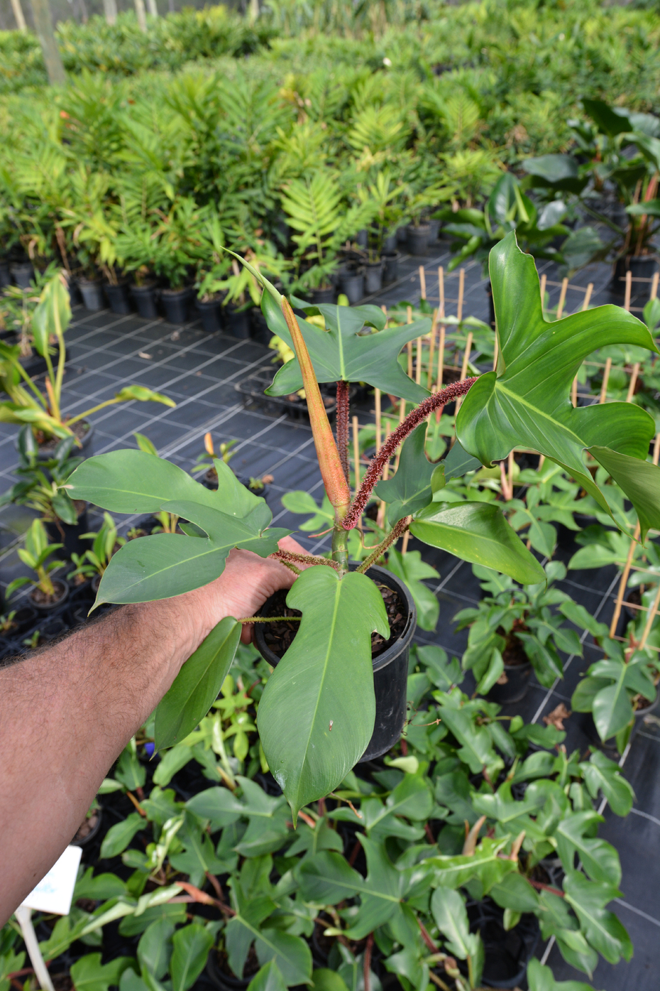 A unique philodendron due to its very distinct stems covered in fuzzy red ‘hairs’, also known botanically as pubescence. An eager climber best grown up a totem or tree to show its true shape. Can also be grown indoors in bright indirect light.