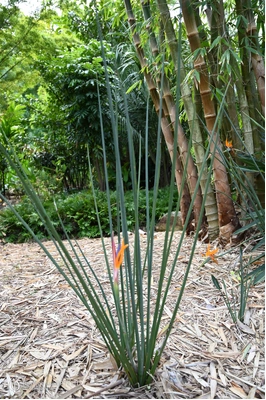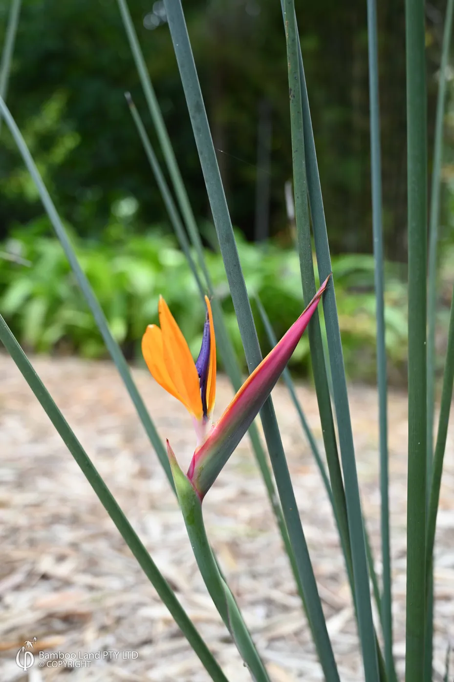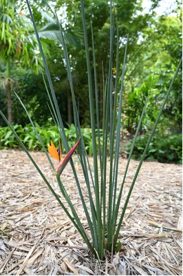 A rare and sought after form of the well known Bird of Paradise with upright cylindrical blue-green stalks forming distinct reed-like clumps. Brilliant orange and vivid blue flowers emerge above the foliage. Both drought hardy and cold tolerant.