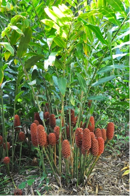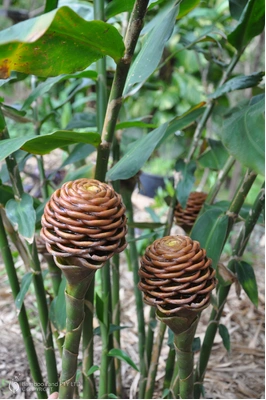 One of the largest and most spectacular of the beehive gingers which makes for a real stand-out feature plant. Very attractive chocolate brown bracts set amongs tall lush green stems. Definately adds a jungle feel to tropical and subtropical gardens!