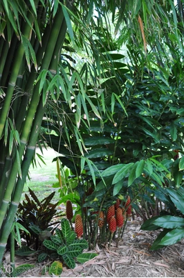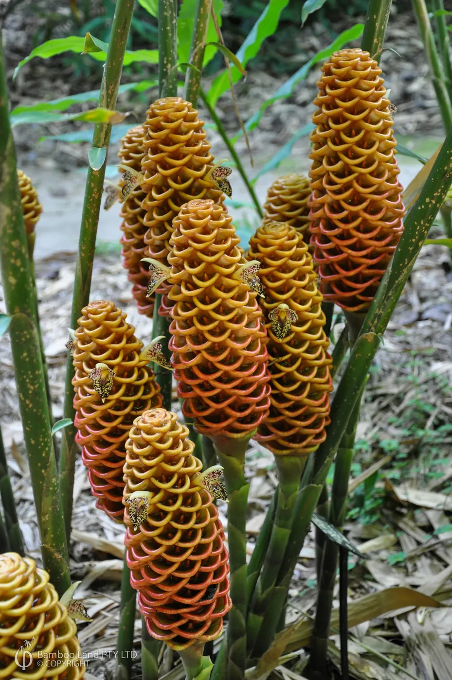 Vibrant orange bracts emerge from the ground among lush tropical foliage. A standout feature plant that brings instant resort-style impact, long-lasting colour, and irresistible exotic appeal to any warm sheltered garden. A real must-have!