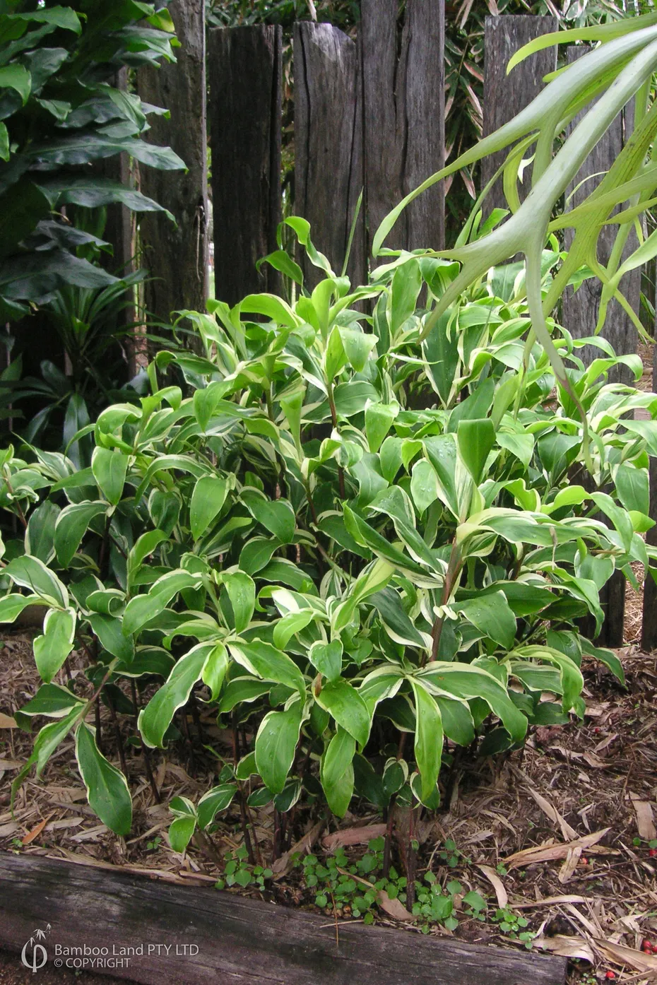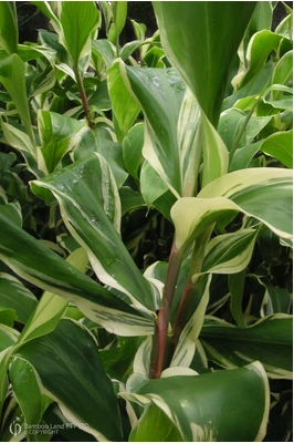 A variegated form of the shampoo ginger which produces a clear fragrant juice from the mature red cones which can be used as a shampoo and conditioner. The roots are also a valuable herbal medicine, usually ground. Dormant in Winter.